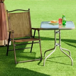 Costway Set Of 2 Patio Folding Sling Back Chairs Camping Deck Garden Beach Brown