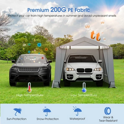 The 200G PE tarp canopy provides a full range of protection to your cars throughout the year