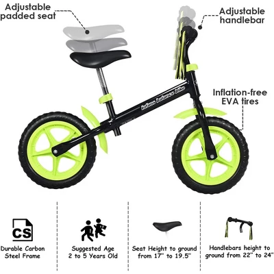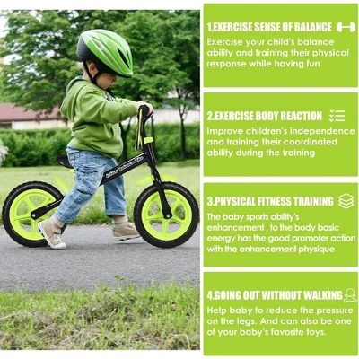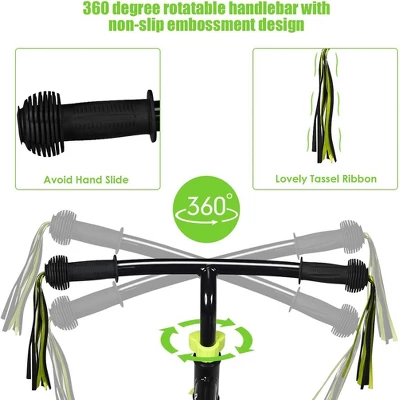 - STYLISH APPEARANCE: Streamlined design and stylish body appearance make this balanced bicycle a fashionable product. Classic black and green/yellow collocation, make the bike simple but fashionable.In addition, the handlebars at both ends have lovely tassel ribbons, adding to the fun of riding.