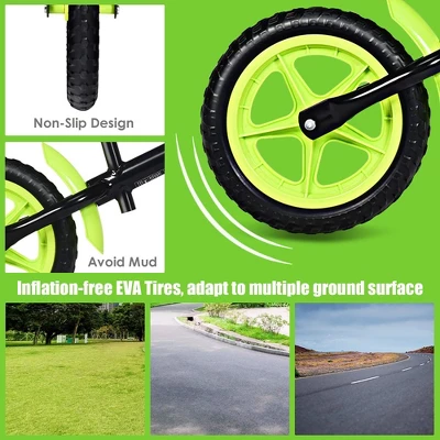 - PERFECT DESIGN: Inflation-free EVA tires that do not need to be inflated from the moment it is received. Tires are shock-absorbing and non-slip, suitable for a variety of ground surfaces. Breathable and comfortable seats are ergonomically designed to allow children to play comfortably.The front and rear wheels each have a fender to block the splashing of mud.