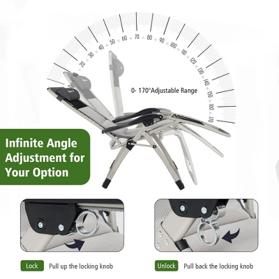 - Wide Adjustable Range: The user-friendly locking system and infinite adjustable positions allow you to change the angle of the recliner from 0-170 degrees according to your preference. Not only can you enjoy a zero-gravity weightless experience, but you can customize different chair angles to sleep, read and chat.