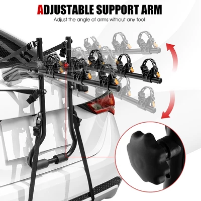 - Adjustable Angle, Length and Height: To accommodate trunks of various frame sizes and designs, this mounted bike rack features the adjustable angle from 0° to 180° for a free adjustment. Moreover, the 2-level adjustable arm lengths (17”/19”) and 3 adjustable heights (18”/20”/22”) provide you with great convenience.