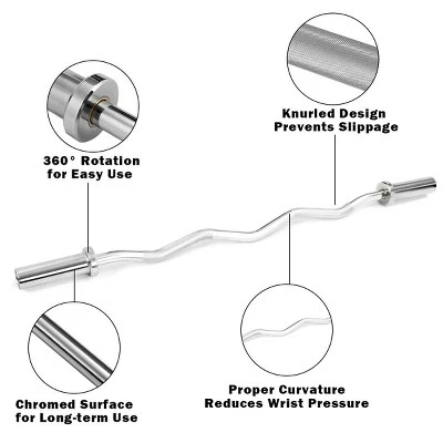 Want to have a healthy body? Want to shape the perfect muscle curve? Want to get fit without going to the gym?We prepared this bar for you. The Olympic Bar from Goplus is the top choice for home gyms, commercial gyms, club owners, and power lifters. Made to facilitate for easy workout sessions, this workout bar features a cambered design and can help avoid any un-due tension in the wrists and forearms. Designed with comfortable knurl and 400LBS load capacity, this bar is perfect for you to build power and muscle. Made of high quality Q235 steel with chromed surface, this bar is extremely durable and does not rust easily. 2PCS copper sleeves and bearings can increase the rolling lubrication of the sleeve for ease of use.Don’t hesitate, come to buy one!