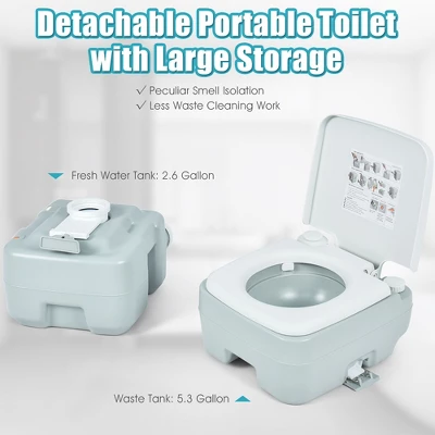 - Powerful Flushing System: Equipped with a piston pump flush, the portable potty provides high efficient flush to reach thorough cleaning effect. The 2.6 gallon freshwater tank and 5.3 gallon waste tank allow you up to nearly 200 flushes before refilling and lower cleaning frequency.