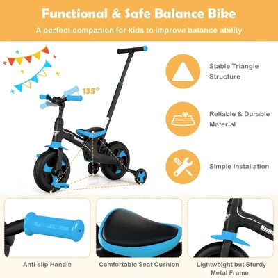 - 5-in-1 Multipurpose Design: Featuring detachable push handle, auxiliary wheels and pedals, this multifunctional bike offers five ways to ride: steerable trike, auxiliary bike, kids bike, auxiliary balance bike and balance bike. Thus, kids can learn to ride step by step and the bike will accompany your little one throughout the childhood.