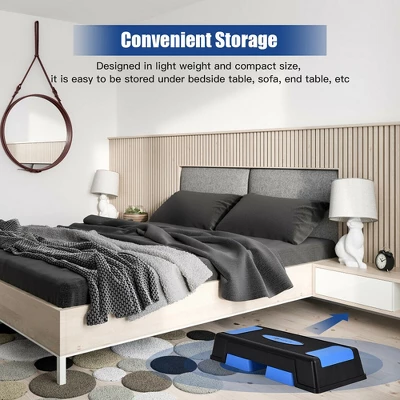 The height of our aerobic stepper can be adjusted easily in 3 levels, meeting the different workout intensity needs. You can feel free to do any training, such as push up, mountain climber, sitting leg raises, split-squat and so on. Anti-slip foot pads and textured surface ensure great safety. After using, it is also easy to carry to anywhere or be stored at any corner you like. It is an ideal fitness tool for people of all ages and fitness levels.