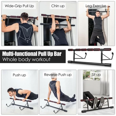 - Multifunctional Use for Fitness: With 6 foam padded grips, the pull up bar offers various grip positions for multiple workouts to exercise and build up muscles. This pull up bar can support different exercises such as pull-ups, chin-ups, leg lifts. Meanwhile, you can also use it on the floor to do sit-ups or push-ups, training core strength.