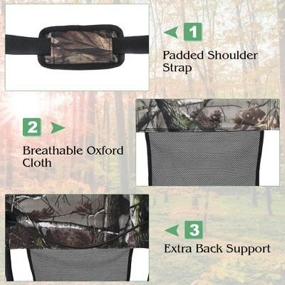 This hunting chair is made of strong iron frame, which provides reliable support. The breathable 600D Oxford cloth and waterproof mesh cloth are designed for long-time outdoor activities. Moreover, Low-profile seat and wide back give you a comfortable hunting experience. This hunting chair can be easily folded or unfolded in a short time, which is convenient to use and store. Multiple pockets is convenient to place your water bottles and and other personal belongings. What’s more, this camouflage vanish hunting chair is suitable for all kinds of outdoor activities, such as camping, picnic, hunting, etc. Equipped with an adjustable padded shoulder strap, it is easy to transport the chair.