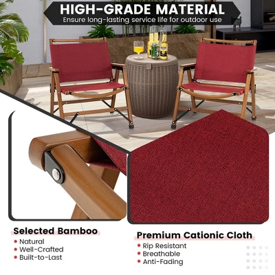 - Top-Grade Bamboo Frame: The frame of the folding chair is constructed of selected bamboo, which is natural, well-crafted and built-to-last. The overall structure is also highly strengthened by metal connections, enabling the chair to load up to 330 lbs.