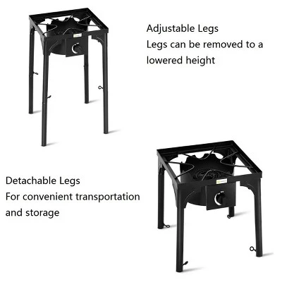 - Cast-Iron Head:This powerful single burner, equipped with a cast iron head, outputs a whopping BTU of 100000. And it can adjust the firepower to make your cook more delicious