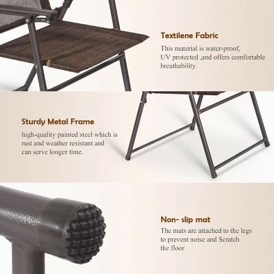 Our new outdoor sling back chairs are perfect for summer lounging, which is really utility and functional for your daily life. Durable steel frame and Textilene are sure to be a reliable Patio Furniture for your home. What’s more, it has a folding design for easy stacking and storage. If you are looking at ourchair,don’t hesitant to buy one set from our store