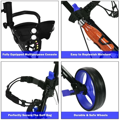 - Package Includes: 1 X Golf Cart, 1 X Stool, 1 X Umbrella Holder 3 X Wheels 1 X Instruction