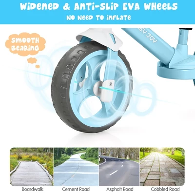 - For Different Grounds: Equipped with anti-slip and widened EVA wheels, this toddler training bicycle is suitable for different ground surfaces, such as cement road, boardwalk and asphalt road, etc. Besides, the build-in bearing makes riding smoothly. And these wheels don’t require inflation to save time and effort.