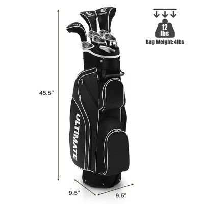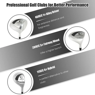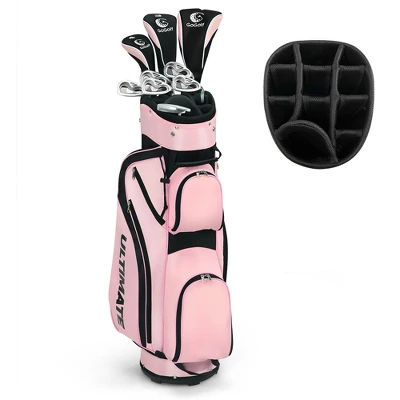Specially designed for intermediate to advanced players, this womens complete golf club set takes you golf to a new level. This golf club set includes an alloy driver, 3# fairway wood, 4# hybrid, 6#-9# irons, pitching wedge, putter and the lightweight stand bag. Such a completed set certainly will meet all your needs. Plus, the alloy driver is designed with the large sweet spot to improve forgiveness, which also allows for fast head speed. And the irons are toe and heel weighted for the better center of gravity. Meanwhile, you can also use the pitching wedge to hit the ball over obstacles. Considering that you may take it outside, the set comes with a stand bag for convenient use. Adjustable straps help you to easily carry the bag anywhere. Do not hesitate to buy it now!