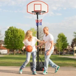 Costway 4.25-10FT Portable Adjustable Basketball Hoop System With 44” Backboard 2 Nets