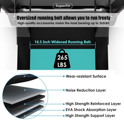 - Widened Running Belt & Shock Reduction Foot Mat: Our 5-layer widened and shock-absorbing running belt can provide you with a spacious running area to help reduce the damage to knees and ankles. In addition, the rubber foot pads on the bottom can effectively reduce vibration, so you can enjoy sports without disturbing neighbors or family members.