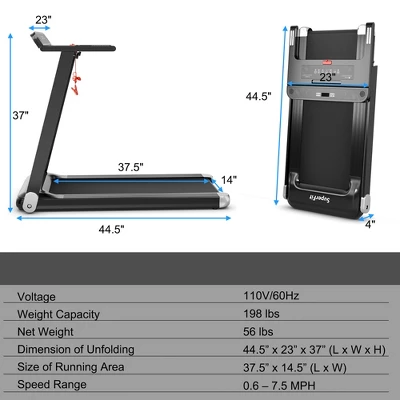 0.6 – 7.5 MPH adjustable speed for walking, jogging and running