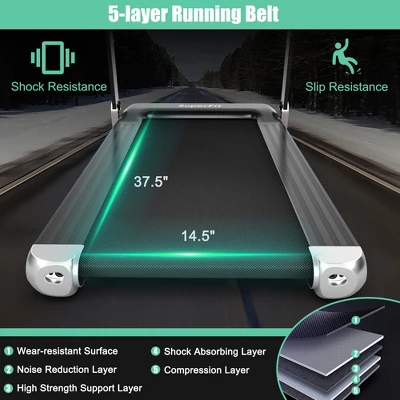 - Excellent Shock Absorption Ability: Designed with 5-layer running belt, this compact treadmill brings comfortable running experience. At the same time, the shockproof and anti-slip surface reduces impact on your knees, joints and ankles, offering safe protection for your legs.
